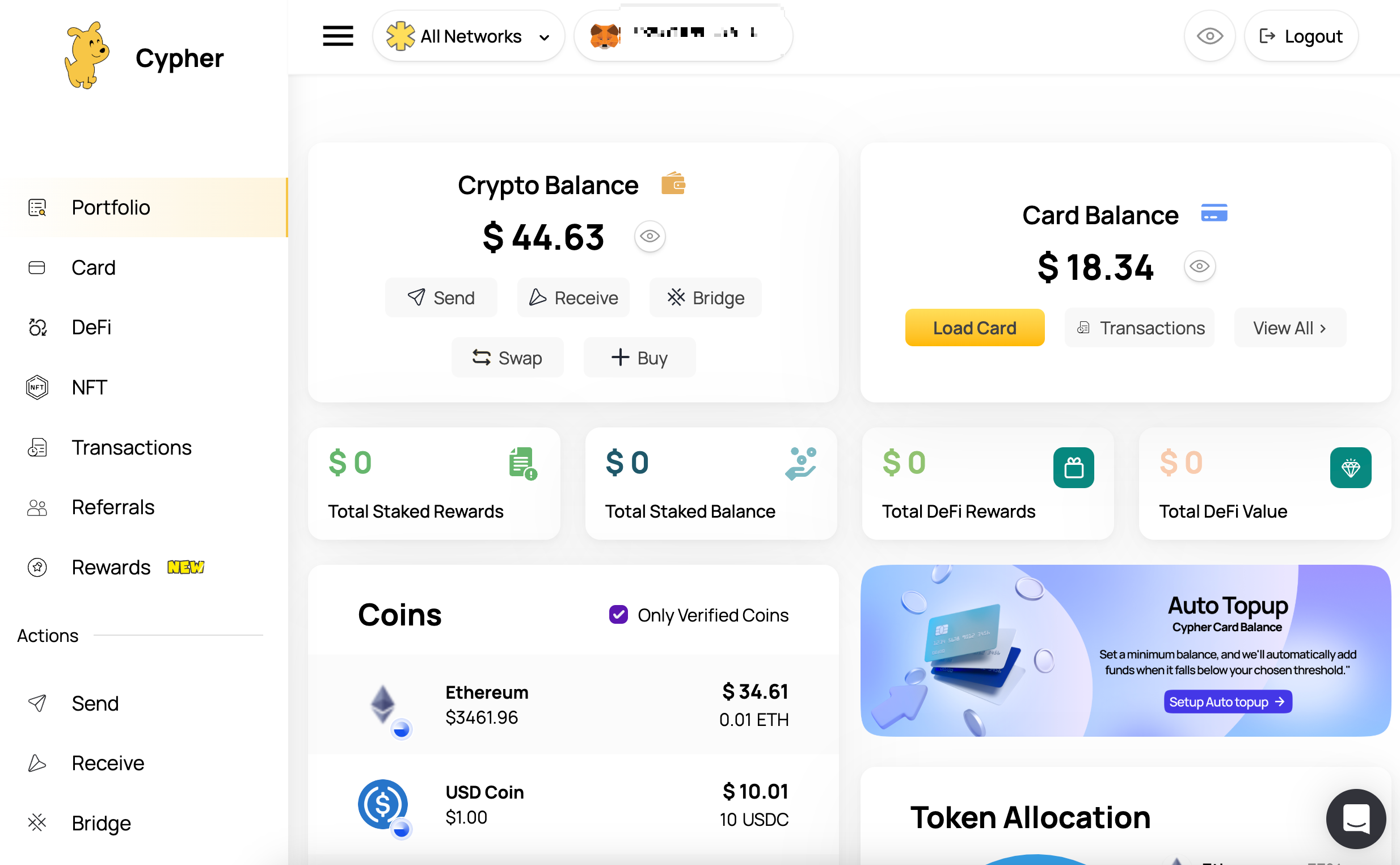 이더리움부터 솔라나 , 코스모스 계열의 코인들을 지갑과 연결해서 충전해서 사용할 수 있다.