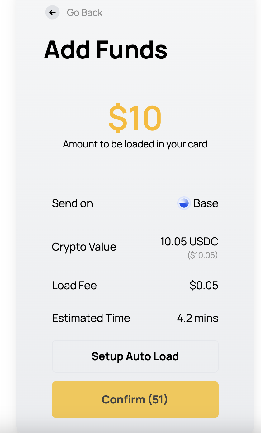 - 지갑에서 지원하는 모든 코인은 카드에 충전해서 결제가 가능합니다. (USDT, USDC 추천)