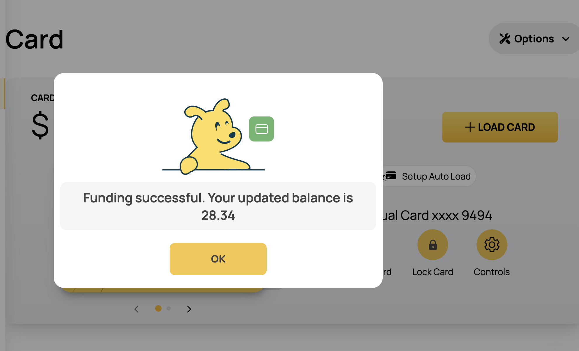 - Load 카드 선택후 Fund Card에서 USD를 선택해줍니다. (최소 충전금액이 $10이상입니다.)